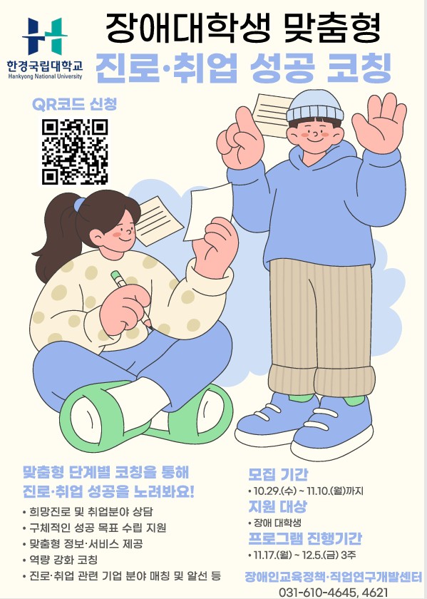 [한경국립대학교] 장애대학생 맞춤형 진로 취업 성공 코칭 프로그램 참가자 모집 안내