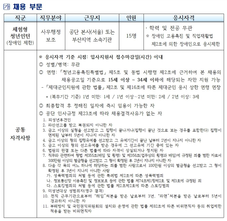 [공무원연금공단] 청년인턴(장애인 제한 경쟁) 채용공고박수진 2025-11-17 09:59:31.047