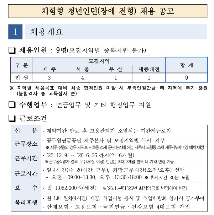 [공무원연금공단] 청년인턴(장애인 제한 경쟁) 채용공고