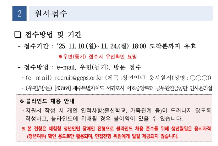 - 접수처: [63568] 제주특별자치도 서귀포시 서호중앙로63 공무원연금공단 인사윤리실